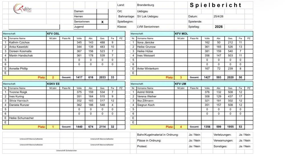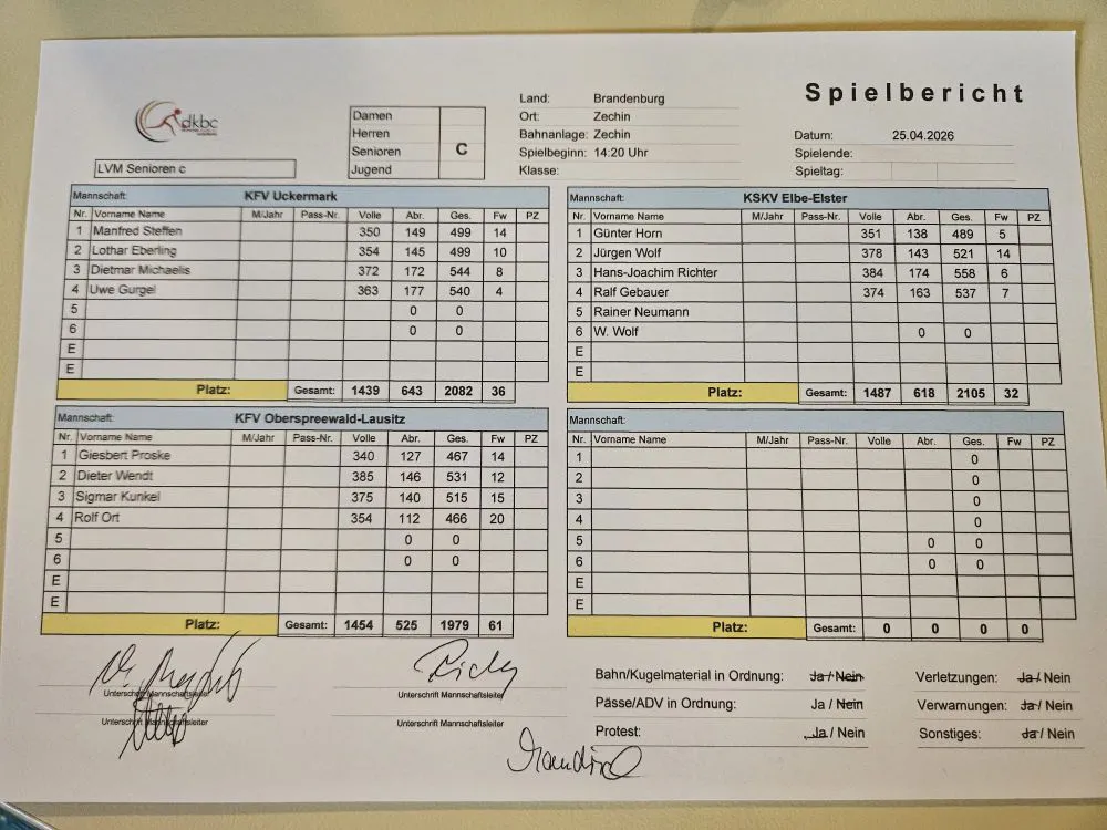 Die Einzelergebnisse in der Übersicht – Senioren A, Senioren B, Senioren C und Seniorinnen